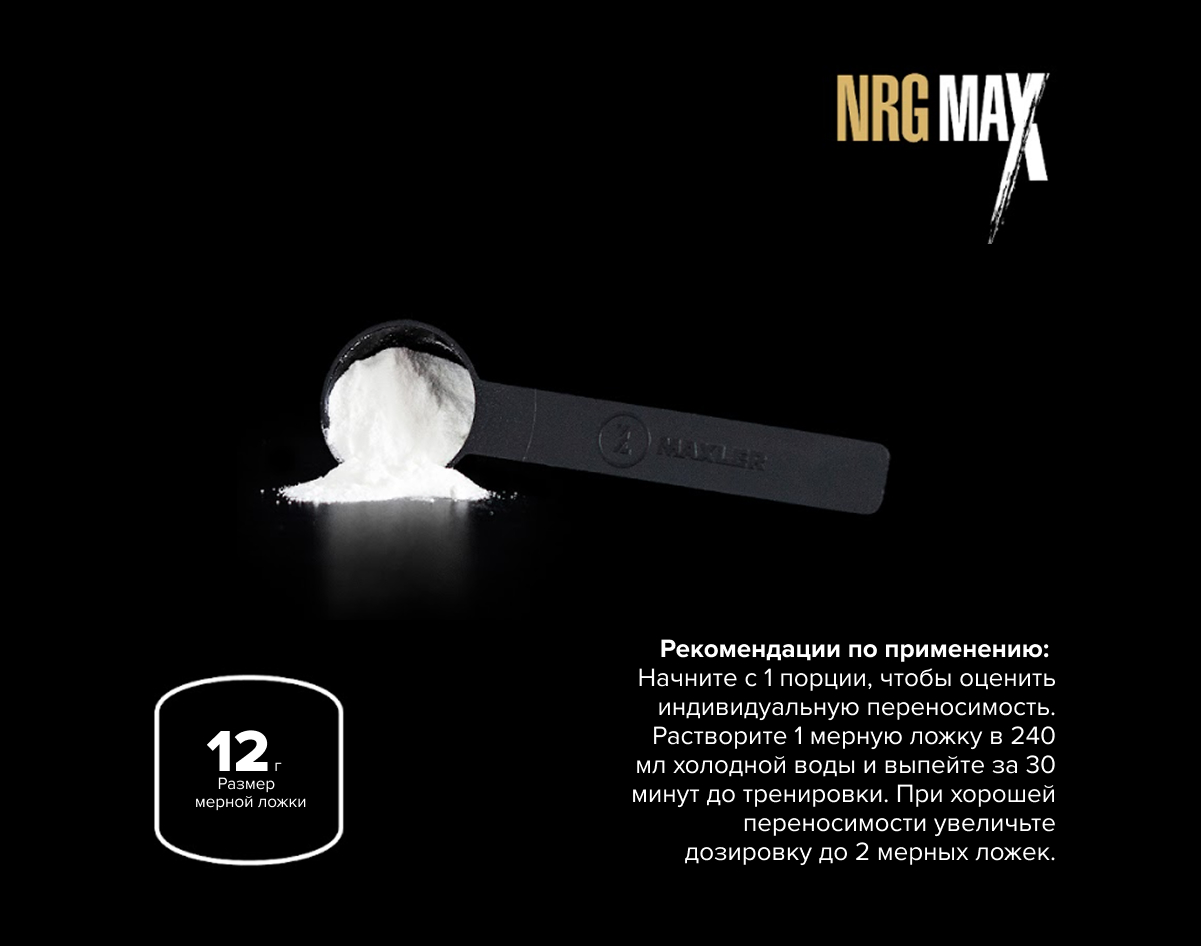 Maxler NRG Max — это эффективный способ получить заряд энергии на всю тренировку. Если у вас был трудный день, NRG Max поможет вам сосредоточиться на работе. Самодисциплина в комплексе с этой добавкой — ключ к впечатляющим результатам!